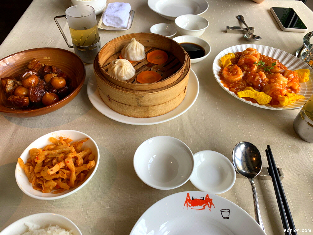↑ 홍샤오쪽갈비는 상해에서 먹는 홍샤오러우보다 좀 드라이했다. 우리나라 갈비찜같은 텍스쳐라고 생각한다. 상하이에서 먹었던 홍샤오러우에 비하면 굉장히 대중적인 입맛에 맞췄다고 보인다. 칠리새우는 생새우로 조리해서 신선했다. 냉동새우로 만든 칠리새우만 먹었던 나에게는 고급진 맛이었다. 소스 자체만 먹어도 자극적이지 않고 맛있었다. 샤오롱바오는 말해 뭐할까. 맛있다.