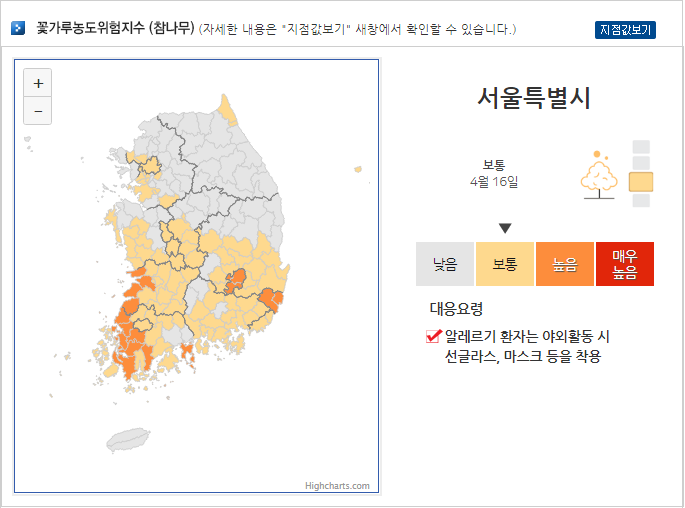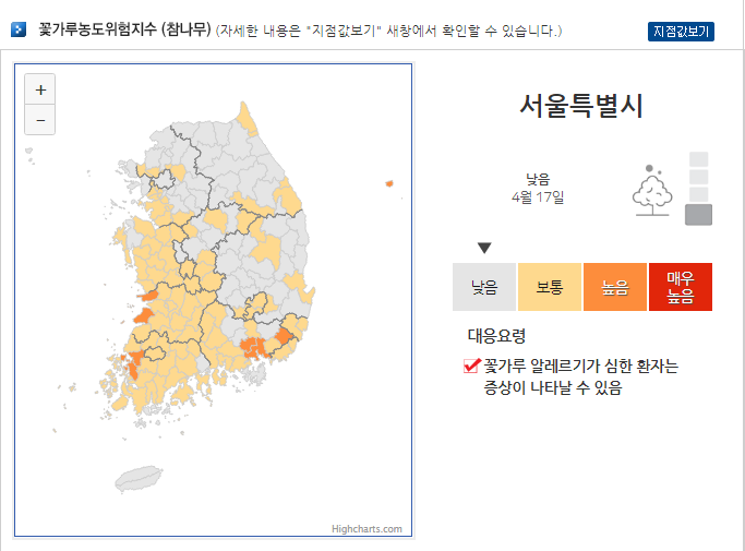 불편하지만 매일같이 기상청 홈페이지를 보며 꽃가루 위험도를 체크하고 있다. 이렇게라도 확인할 수 있어서 다행이..다.