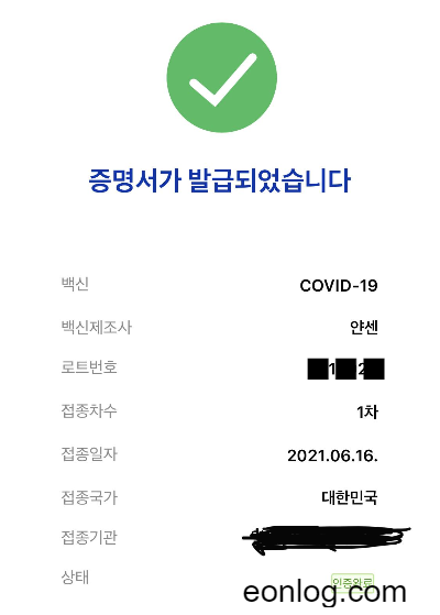 평소 가던 이비인후과에 접종 예약을 해놓고, 예약 시간인 9시보다 20분 먼저 도착했다. 내가 가장 먼저 왔는지 대기석엔 아직 아무도 없었다. 카운터에서 접수를 하고, 건강상태에 대한 문답과 백신 접종 안내문을 읽었다. 9시 10분쯤 내 이름이 호명되어 진료실에 가니 의사 선생님이 간단히 진단을 해주고 주사실로 안내되었다. 이 병원에 다닌 지 4년째지만 주사실은 처음이었다 - 낯익은 장소에서 낯선 공간. 주사실에 들어서자 작은 작업대 위에는 얀센 백신병이 놓여있었다. 간호사님이 백신병과 주사기에 정량이 담겼음을 보여주고 접종해주었다.