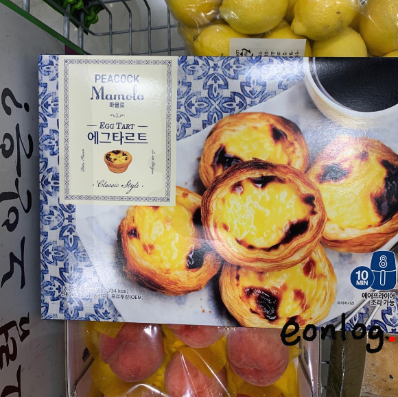 "피코크 마몰로 에그타르트". 외국에서 온 것 같은 비주얼. 역시 멀리서 온 녀석이었다. 무려 에그타르트의 본고장인 포르투갈에서 OEM으로 생산했다고 외치고 있었다. 이건 꼭 사야 했다.