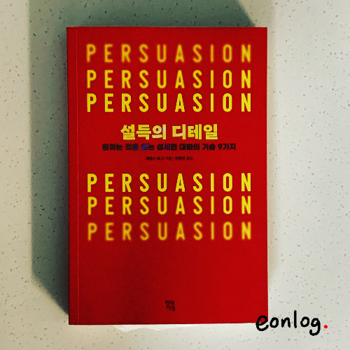어떠한 모임에 소속되어하는 독서에는 여러 가지 장점이 있는데, 평소에 읽지 않을 책도 보게 되는 것은 그중에서도 중요하다고 하겠다. '설득의 디테일'은 내게 그런 책이었다. 평소 같으면 집어볼 생각도 안 했을 텐데, 읽어보니 괜찮았다. 여기저기서 주워 들었던 대화 + 커뮤니케이션 관련 정보들이 예문과 함께 잘 정리되어 있었기 때문이다.