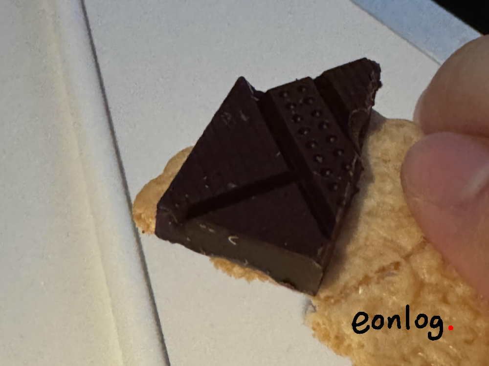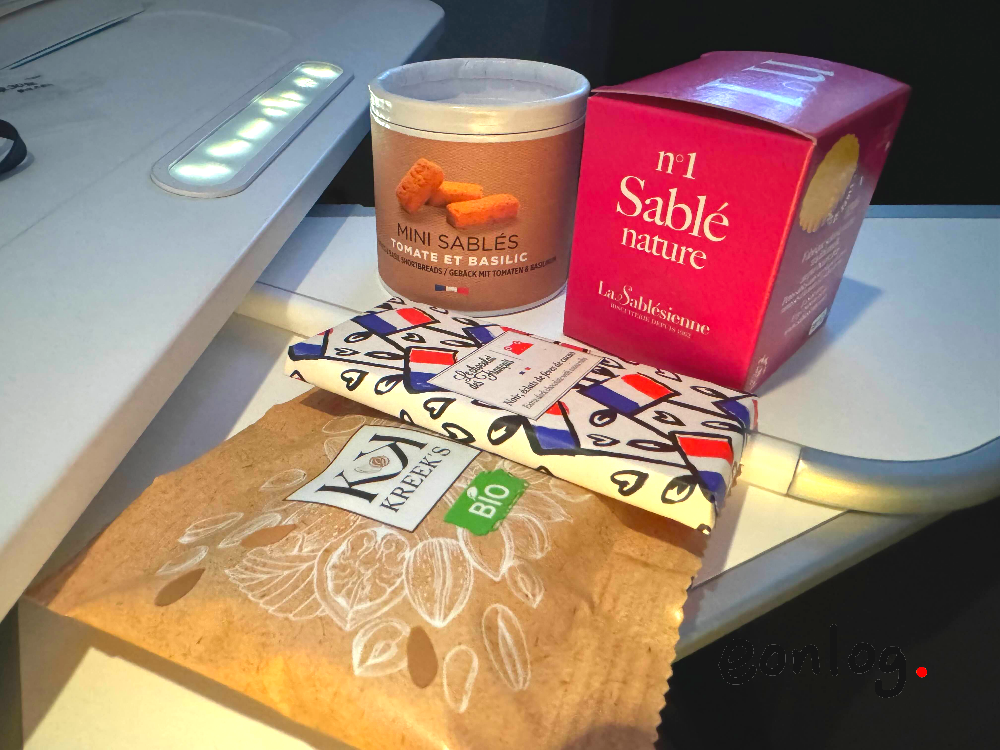 한숨 자고 화장실에 들어갔다 나왔는데, 맞은편 갤리에 스낵바가 준비되어 있었다. 하필 그때 스낵바 옆에서 식사를 하던 승무원👨🏻🎨이 나를 보더니 스낵바에서 필요한 거 있으면 가져가라고 말해줬다. 그것을 보고 ‘에어프랑스는 이런 것도 있네요?'라고 했더니, 처음 타냐면서 모두 한 종류씩 챙겨줬다. 특별히 맛있다고 알려준 쩝쩝 방법은 초콜릿을 사브레에 올려 먹으라는 것이었다. 프랑스인들은 이렇게 먹는다는데 사실여부는 모른다. 맛은 정말 좋았다.