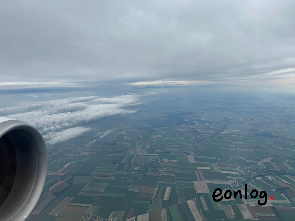 두 번째 기내식을 다 먹은 즈음 비행기는 스위스 위를 날아가고 있었다. 알프스를 구경하려고 창문을 봤는데 구름이 두껍게 끼어서 아무것도 보이지 않았다. 구름 사이로 뭔가 삐죽한 게 있었는데 마터호른인지 아니었는지 불분명했다. 좀 아쉬웠다.