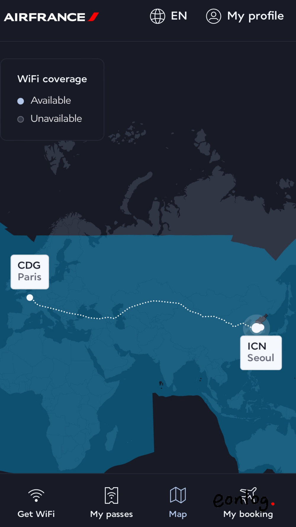 에어프랑스 777-300 기종에서는 기내 와이파이를 이용할 수 있었다. 개인적으로는 크게 관심 없는 기능이지만. 점점 제공하는 항공기가 많아지는 추세다. 나는 여전히 기내에서만큼은 세상과 단절되고 싶다.