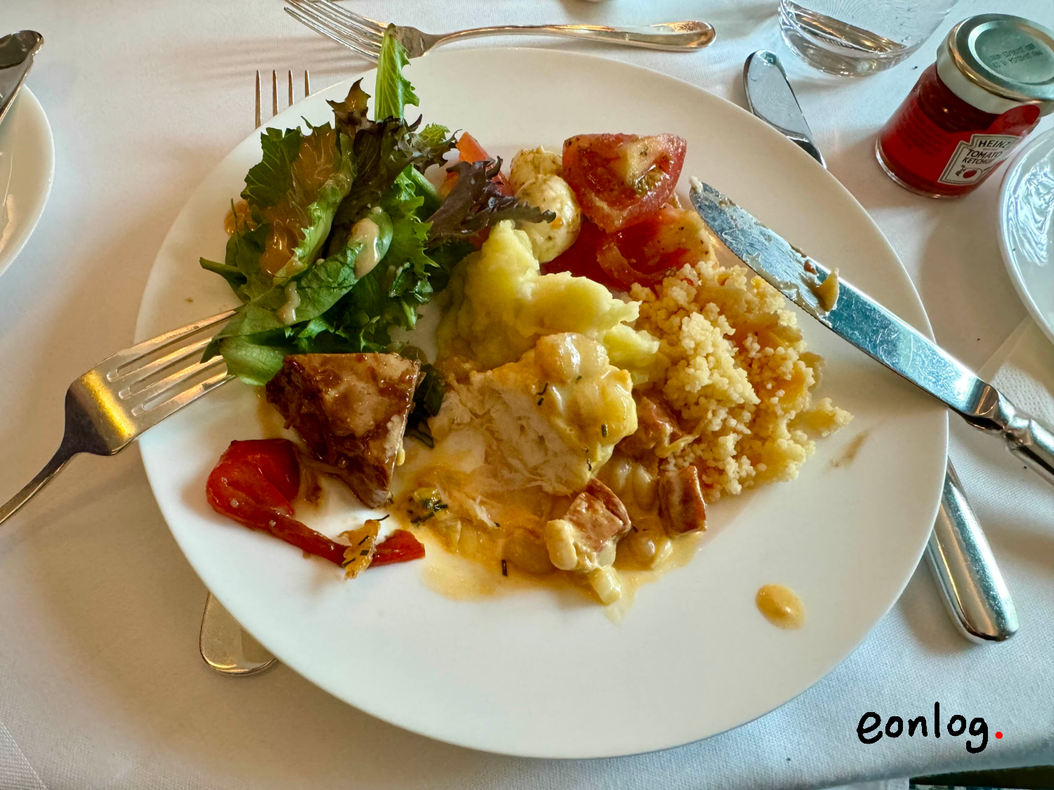 ⬇️ 샐러드, 두부요리, 카프리제, 쿠스쿠스, 매시드 포테이토와 대구요리를 먼저 먹었다. 기대하지 않았던 쿠스쿠스가 너무 맛있어서 아직도 기억난다.