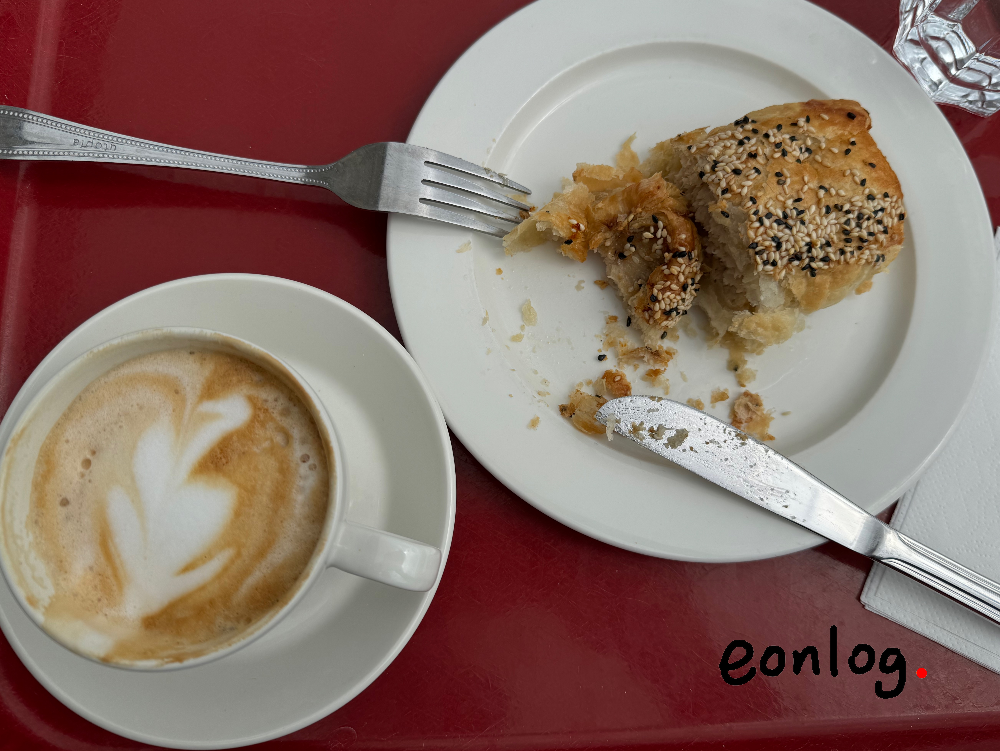 파워스코트 하우스를 그냥 떠나기는 아쉬워서 따뜻한 플랫화이트와 소세지롤로 간단히 배를 채웠다. 값도 크기도 내 기억 속과는 차이가 좀 있었지만, 맛만큼은 똑같았다.