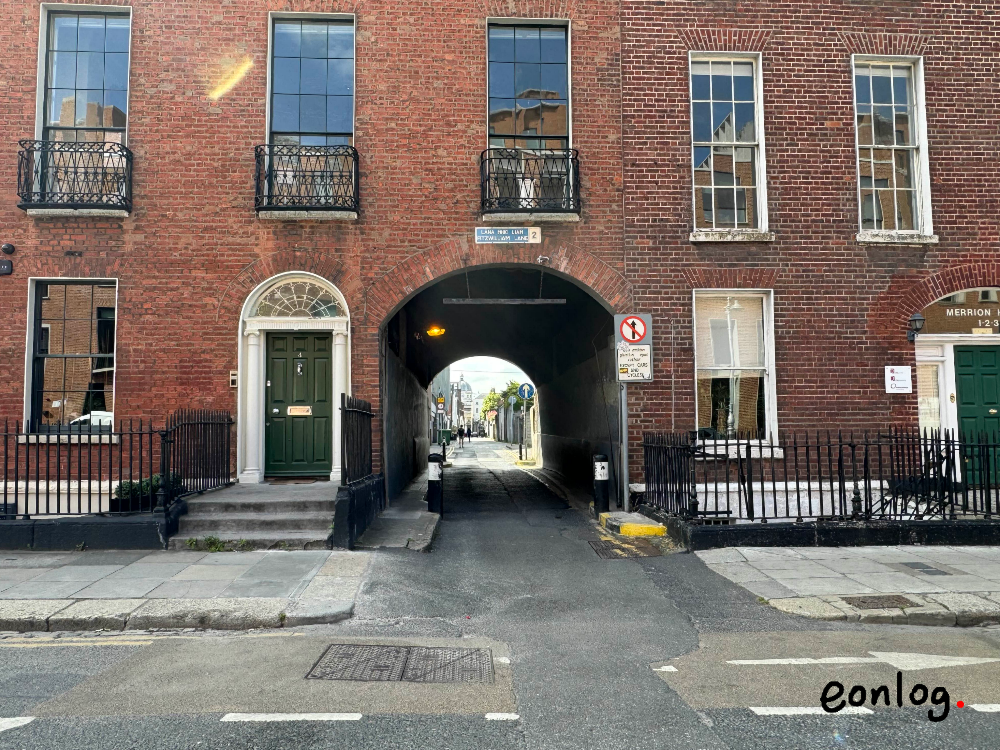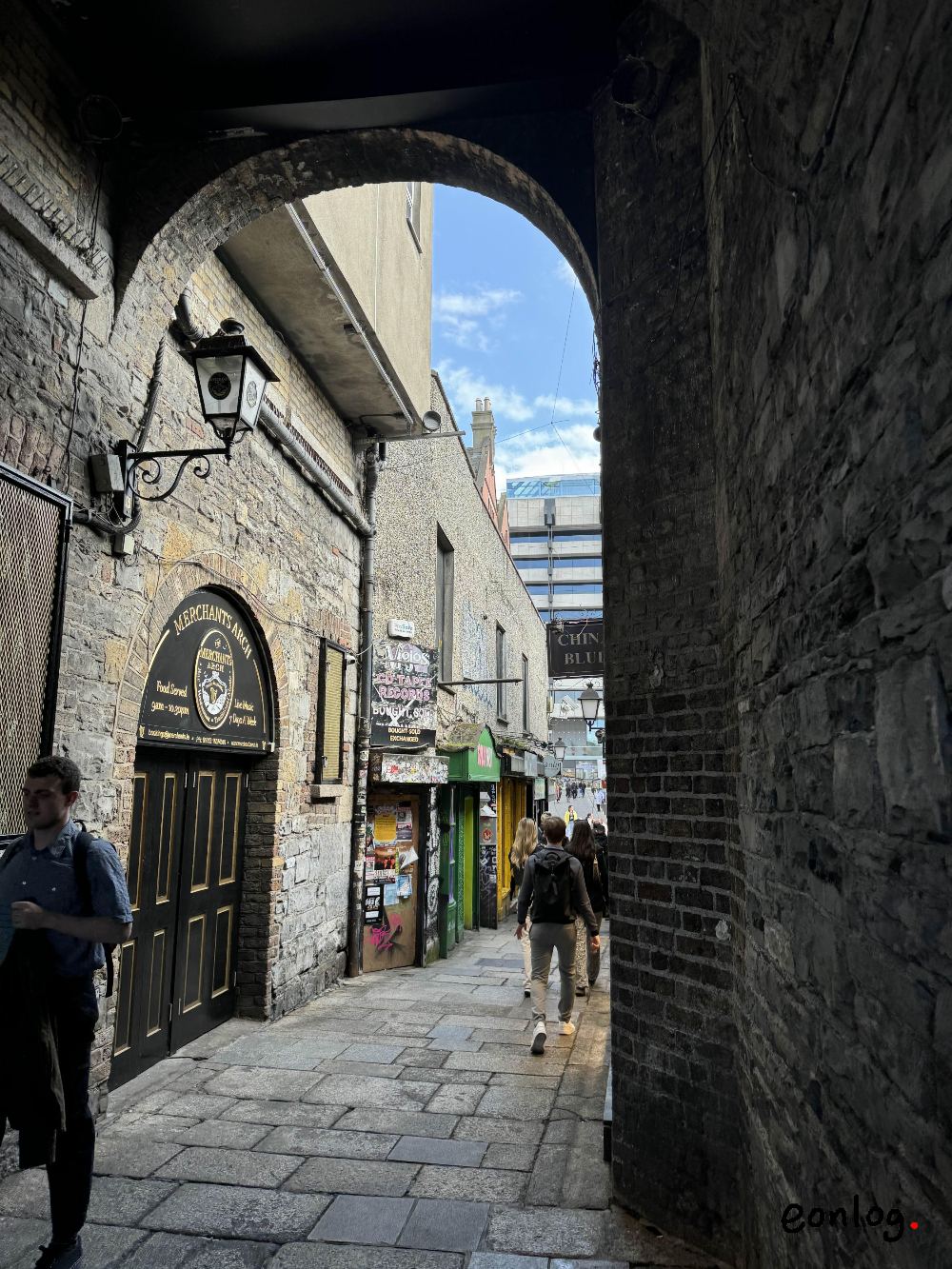 ⬇️ 리피 강에서 템플바로 이어지는 어느 건물의 통로. 더블린 시내에는 사진처럼 오래된 건물이 많았다. 지어진 지 20년 정도 되어서 구축인지 신축인지 헷갈리는 정도가 아니라, 그냥 건물 앞에 옛날 복장을 입고, 카메라로 잘 찍으면 바로 시댁극이 한편 나올 거 같았다.