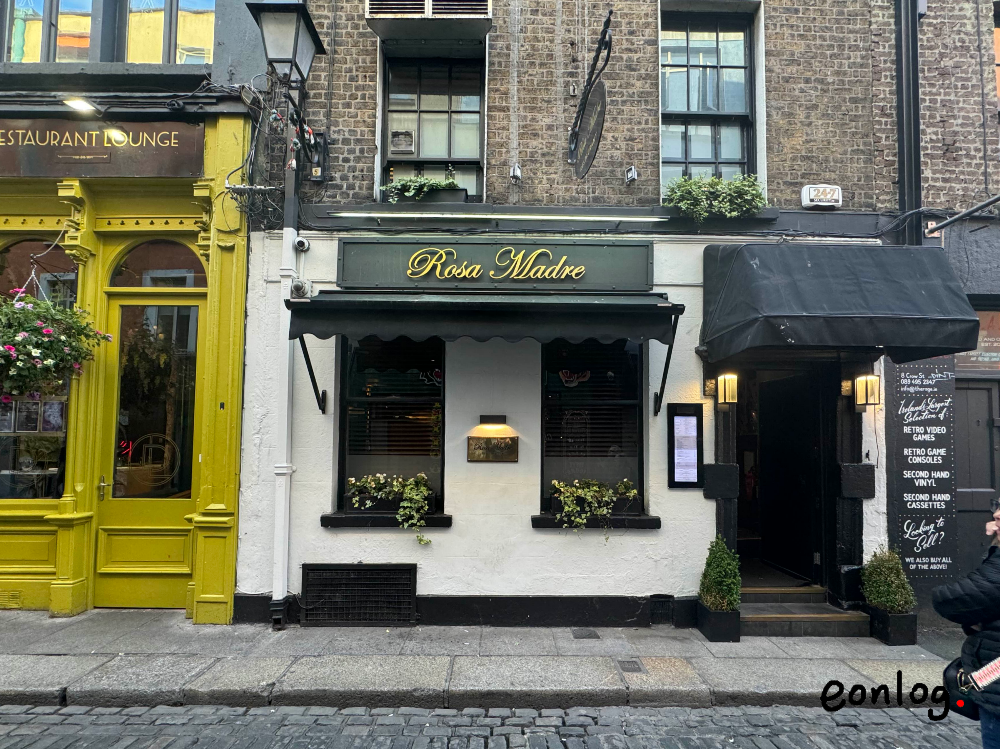저녁식사는 템플바 근처의 ‘Rosa Madre'란 이름의 이탈리안 식당에서 가졌다. 하얀 회벽과, 검은색 간판과 차양과 금색 간판이 멀리서도 눈에 띄는 장소였다.