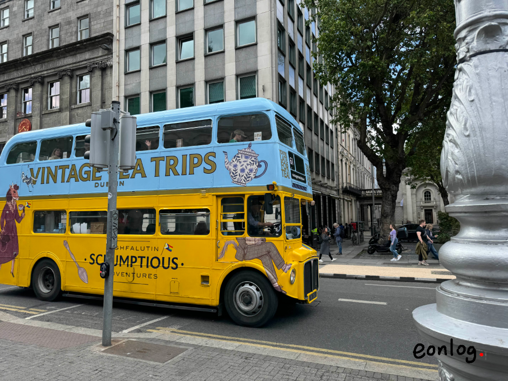 더블린 중심부로 들어오자 독특한 외관의 이층버스가 ‘Vintage Tea Trips'라는 이름을 달고 옆으로 지나갔다. 시내 명소 곳곳을 다니는 버스의 테이블에서 애프터눈티를 즐기는 관광 어트랙션이다. 실제로 이 투어를 다녀온 사람이 말하길, 독특하고 흥미롭지만 내 돈 주고는 안 가겠다고 평했다. 그저 그런 음식은 둘째 치고, 버스가 자꾸 덜컹거려서 차를 마시는 게 영 쉽지 않았다고 한다. 내가 상상한 그대로다.
