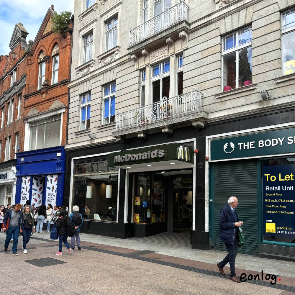 더블린 시내의 맥도날드 간판은 녹색에 실버 글씨였다. 아쉽게도 감자튀김 맛은 못 봤네.