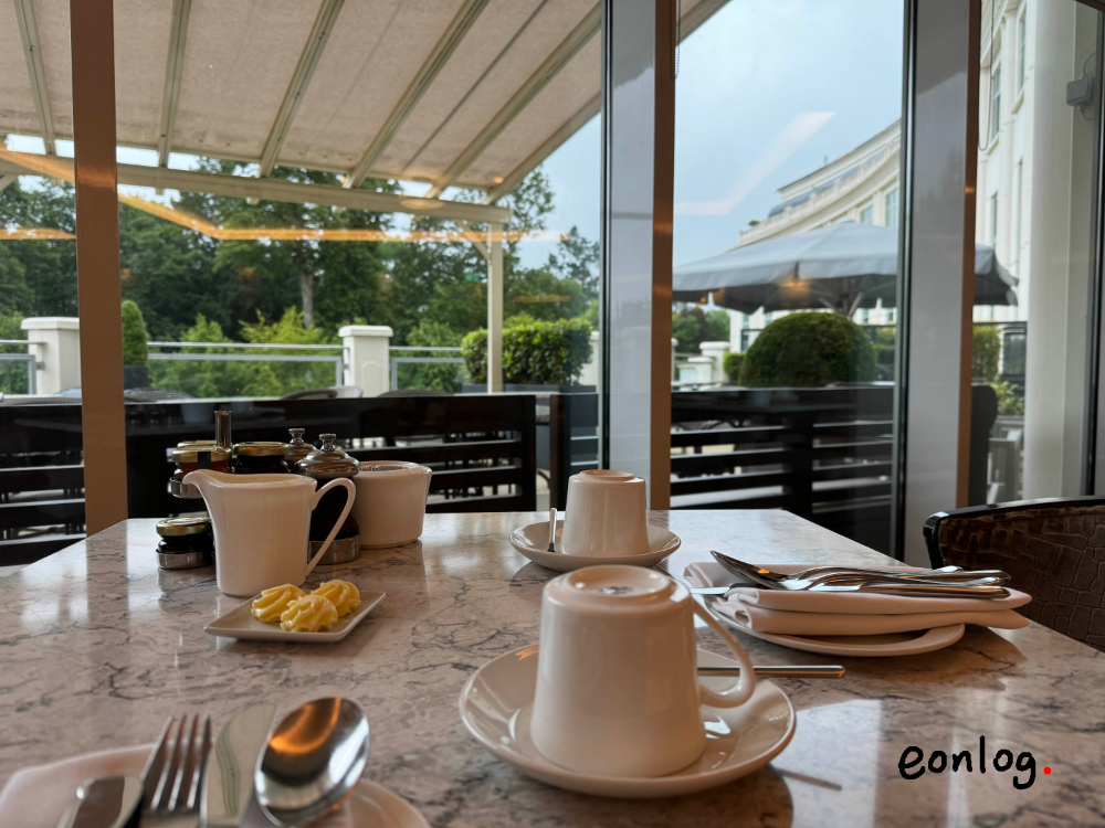 테라스 자리로 안내되었는데, 비구름이 물러간 맑은 하늘 덕분에 밝은 공기에서 식사를 할 수 있었다.